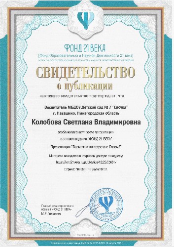 Свидетельство о распространении педагогического опыта на образовательном портале 2020 год