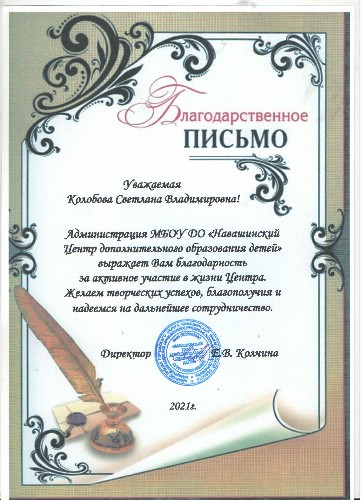 Почетная грамота Управления образования Навашинского района
