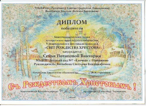 победитель Епархиального конкурса "Свет Рождества Христова в номинации "Прикладное творчество"