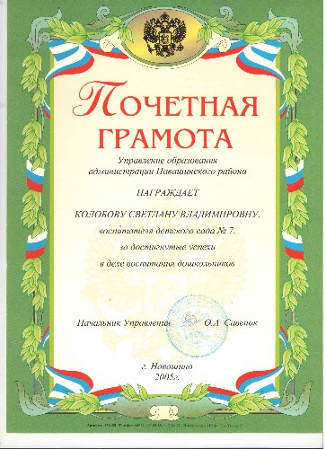Почетная грамота Управления образования Навашинского района