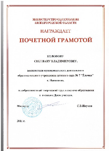 Почетная грамота Министерства образования