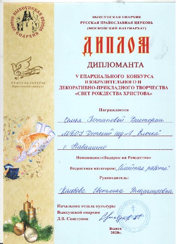 победитель Епархиального конкурса "Свет Рождества Христова в номинации "Прикладное творчество"